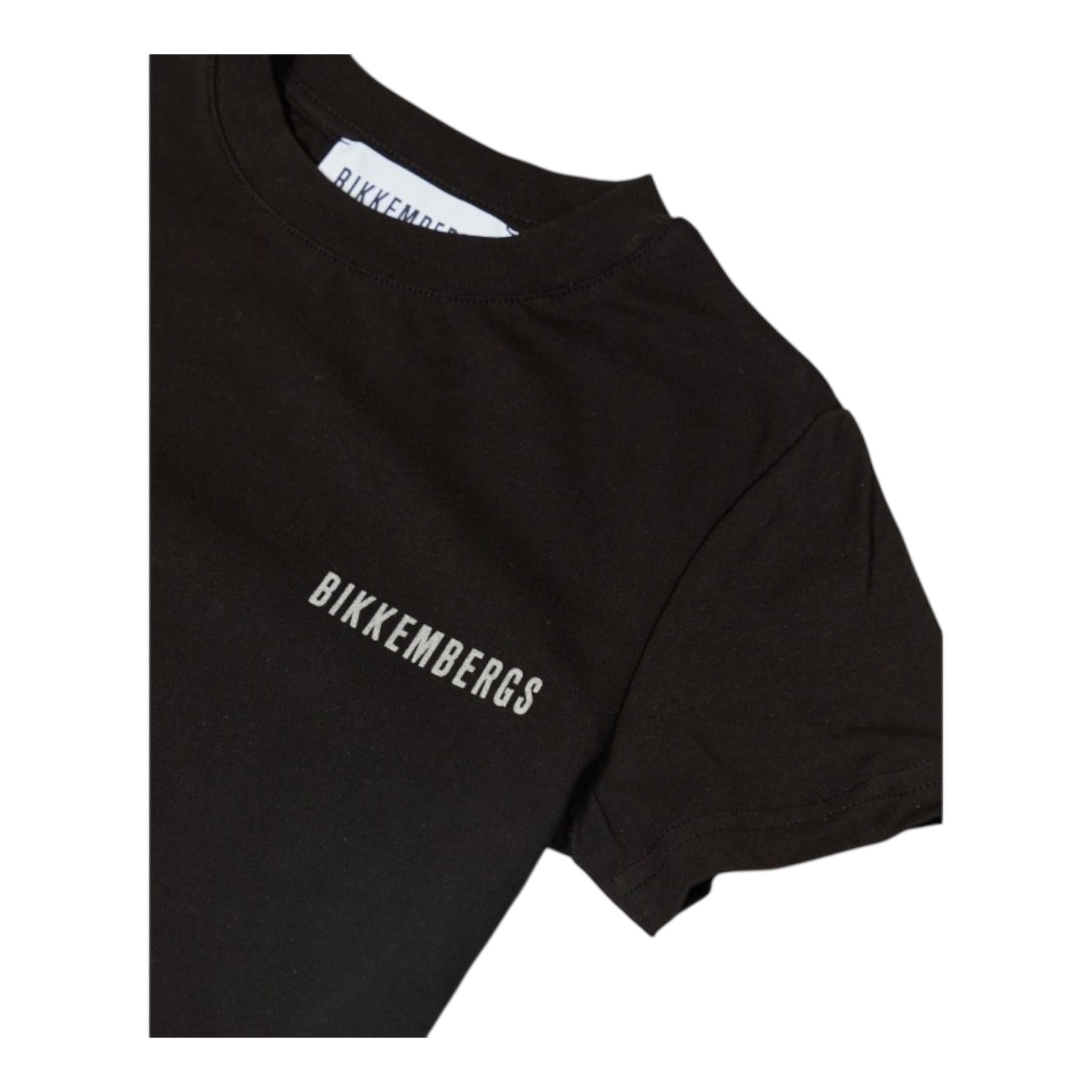 Bikkembergs T-Shirt Girocollo Tinta Unita con Logo per Bambino BK1602 NERO BiKKEMBERGS