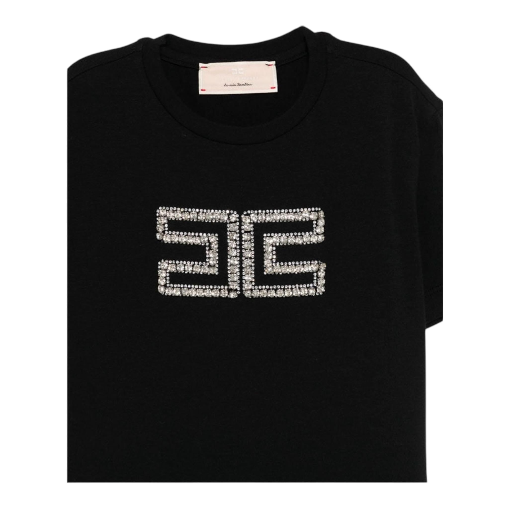 Elisabetta Franchi T-Shirt Girocollo Tinta Unita con Applicazioni Brillantini per Bambina