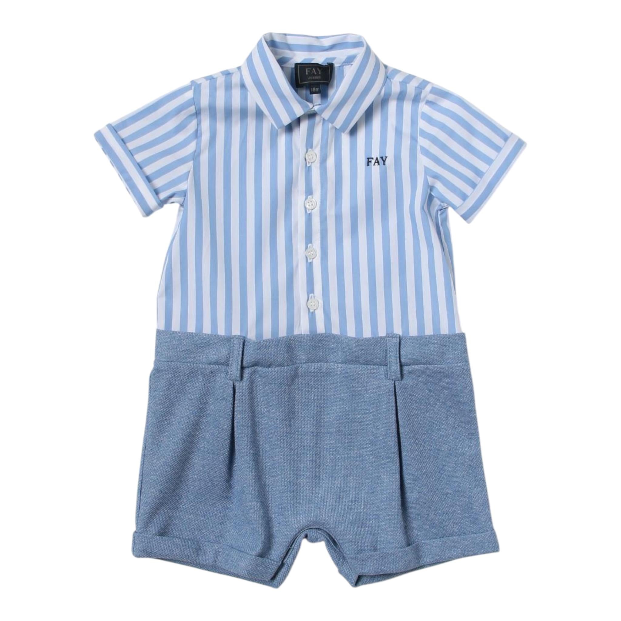 Fay Pagliaccetto Tinta Unita con Fantasia A Righe per Neonato FSA500 AZZURRO FAY