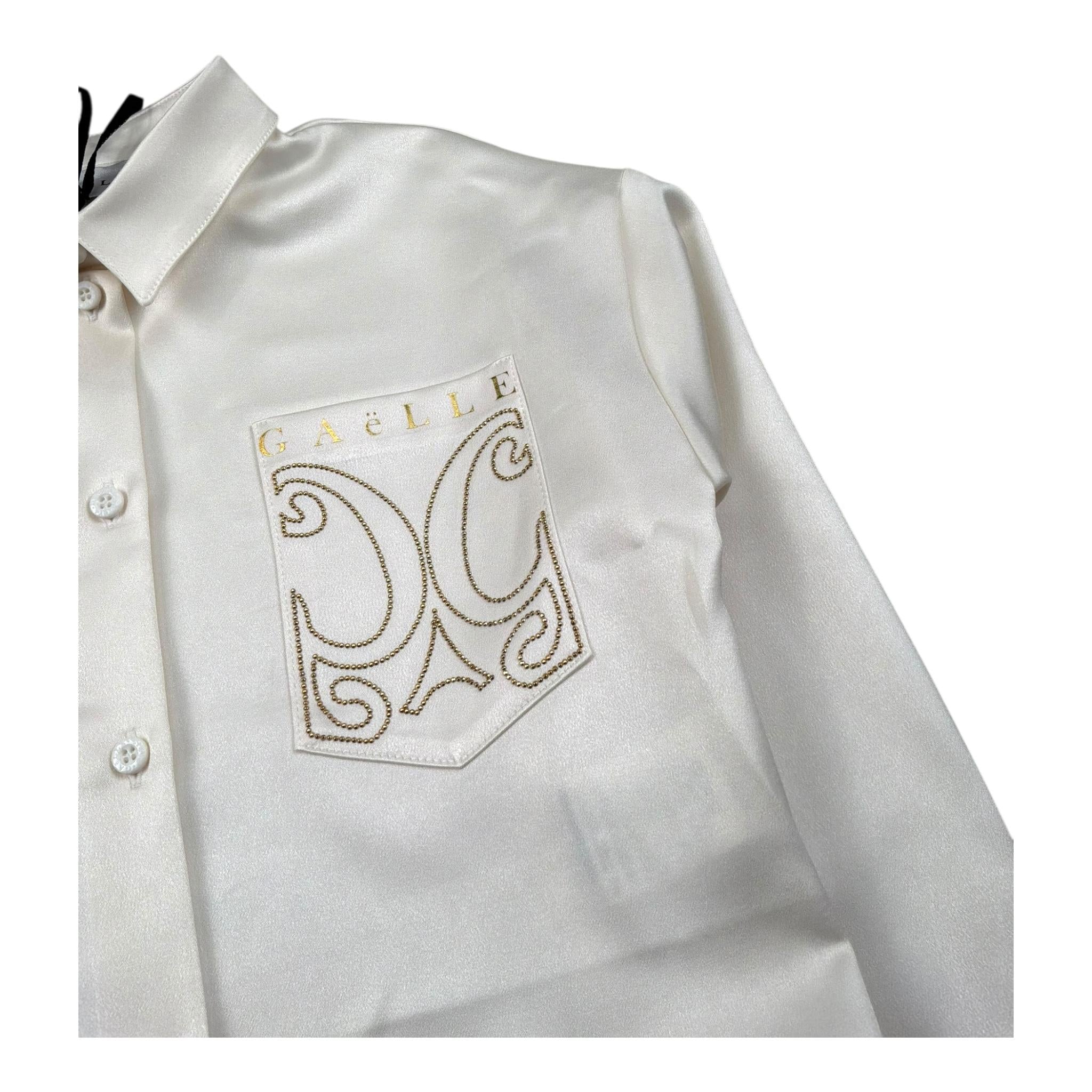 Gaelle Camicia Manica Lunga Tinta Unita con Strass per Bambina