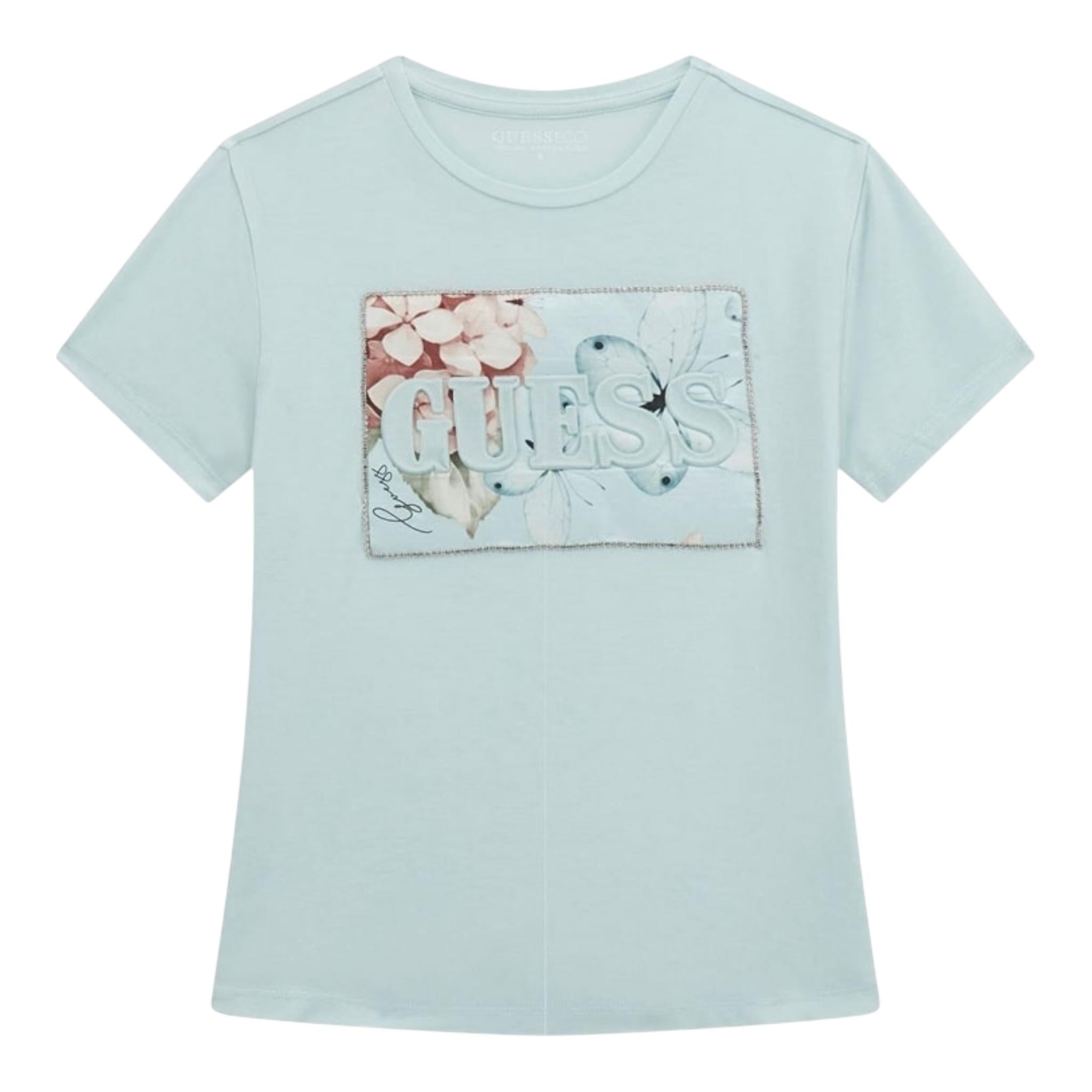 Guess T-Shirt Girocollo Tinta Unita con Applicazione per Bambina