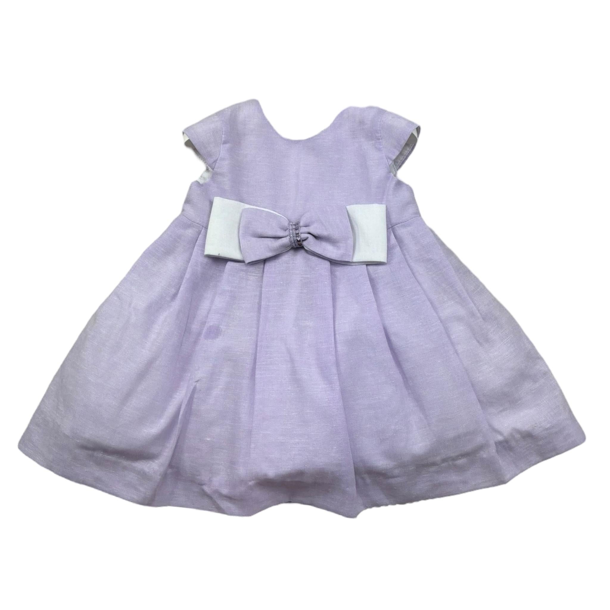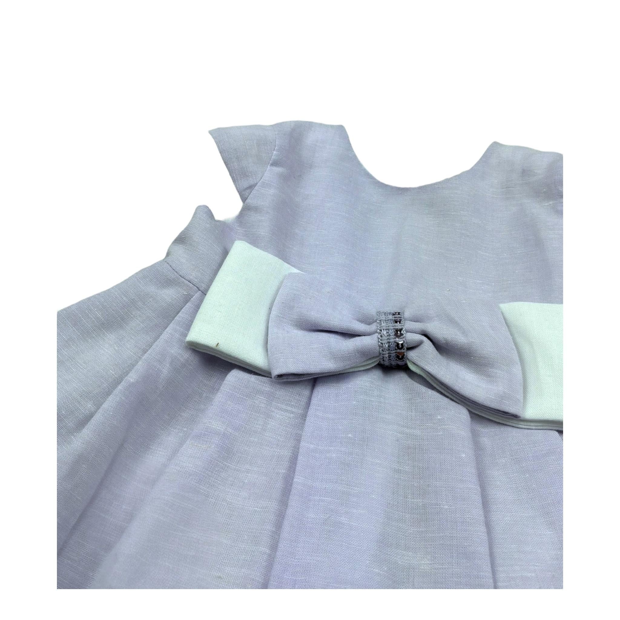 I Delfi Abito Giromanica Tinta Unita con Fiocco per Neonata