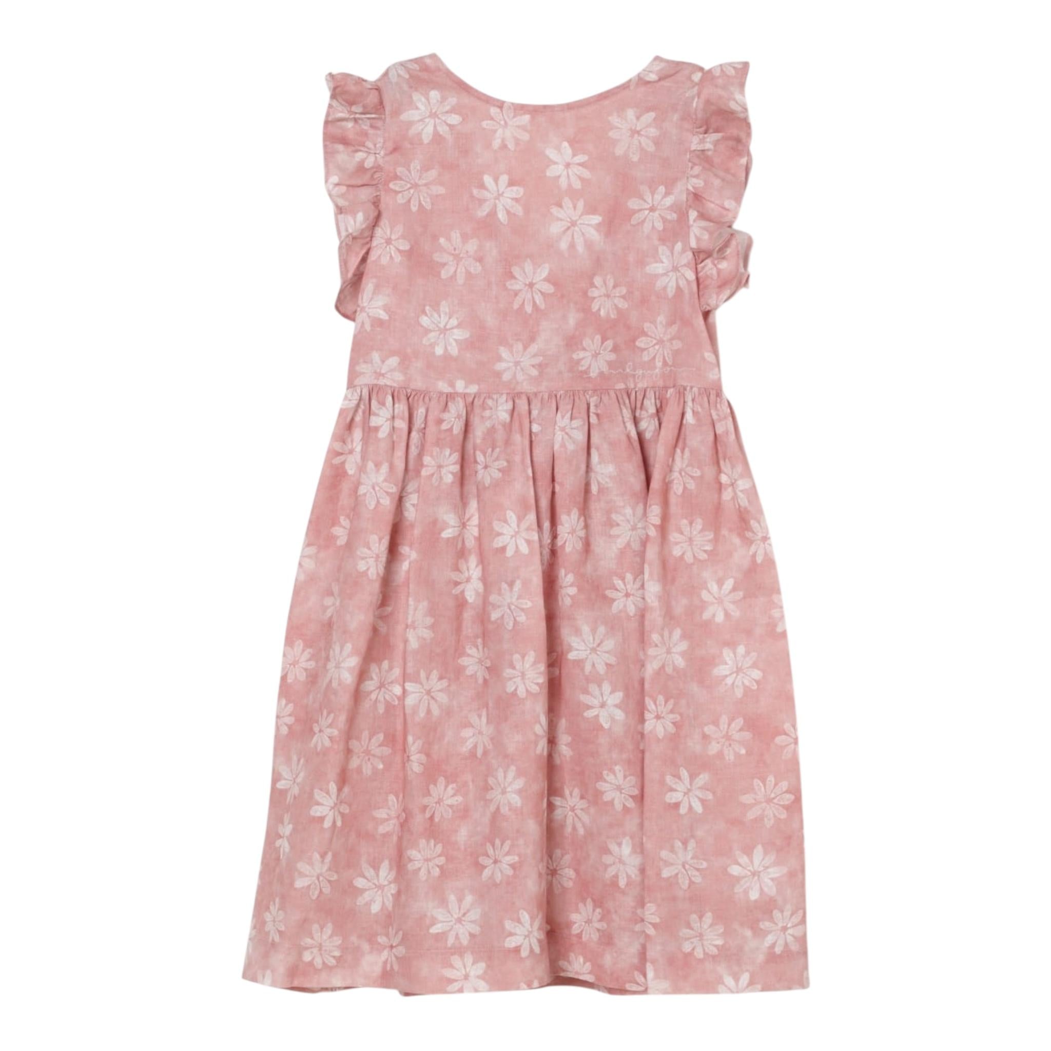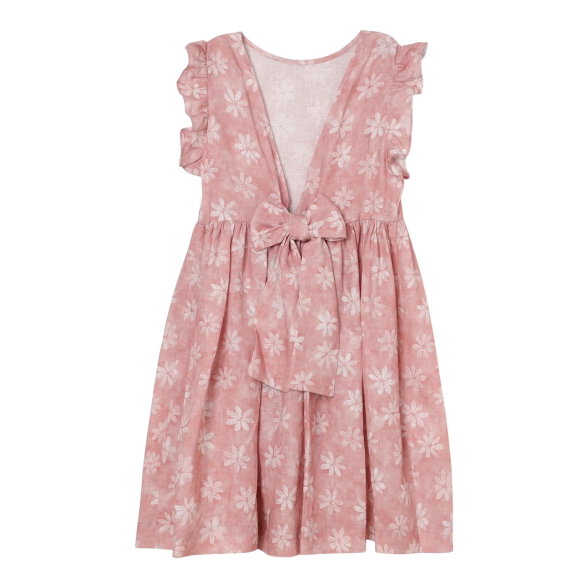 Il Gufo Abito Giromanica Tinta Unita con Fantasia Fiori per Neonata