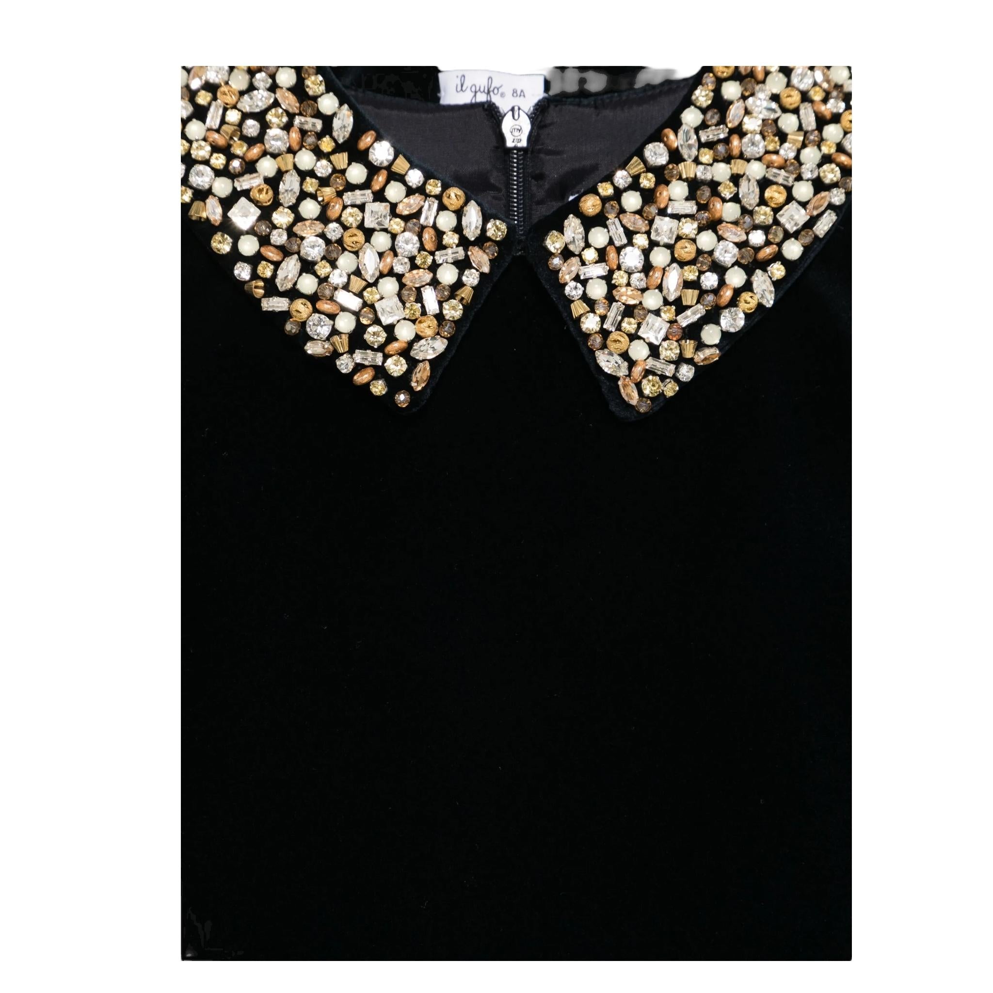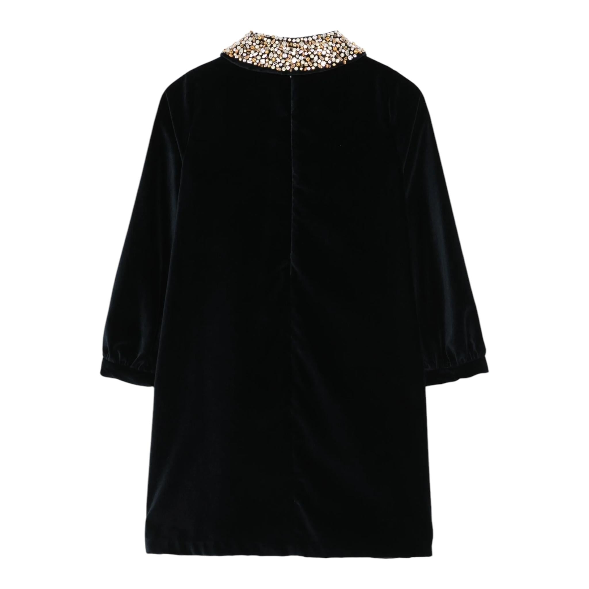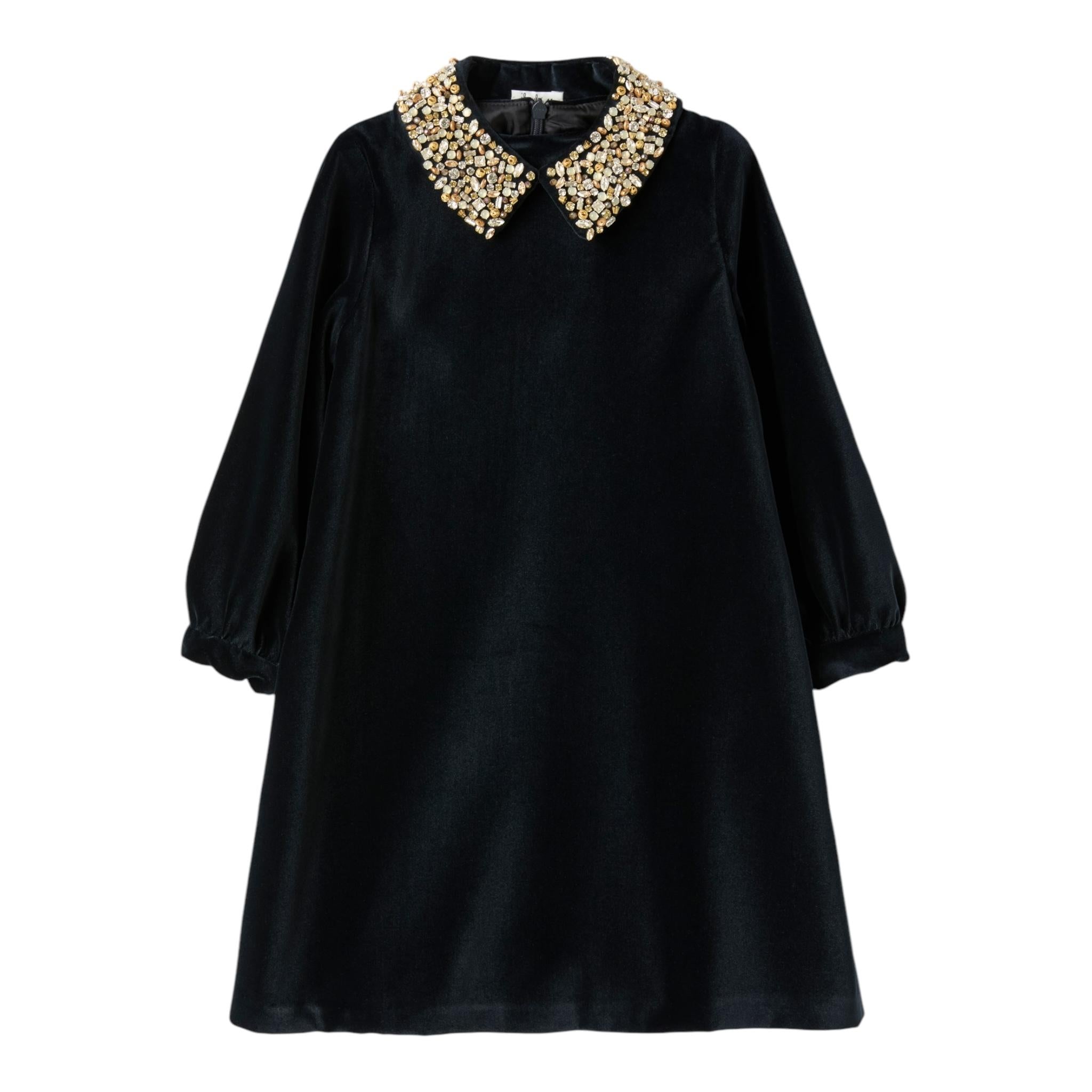 IL GUFO abito manica lunga tinta unita in velluto con collare Blu per Neonata