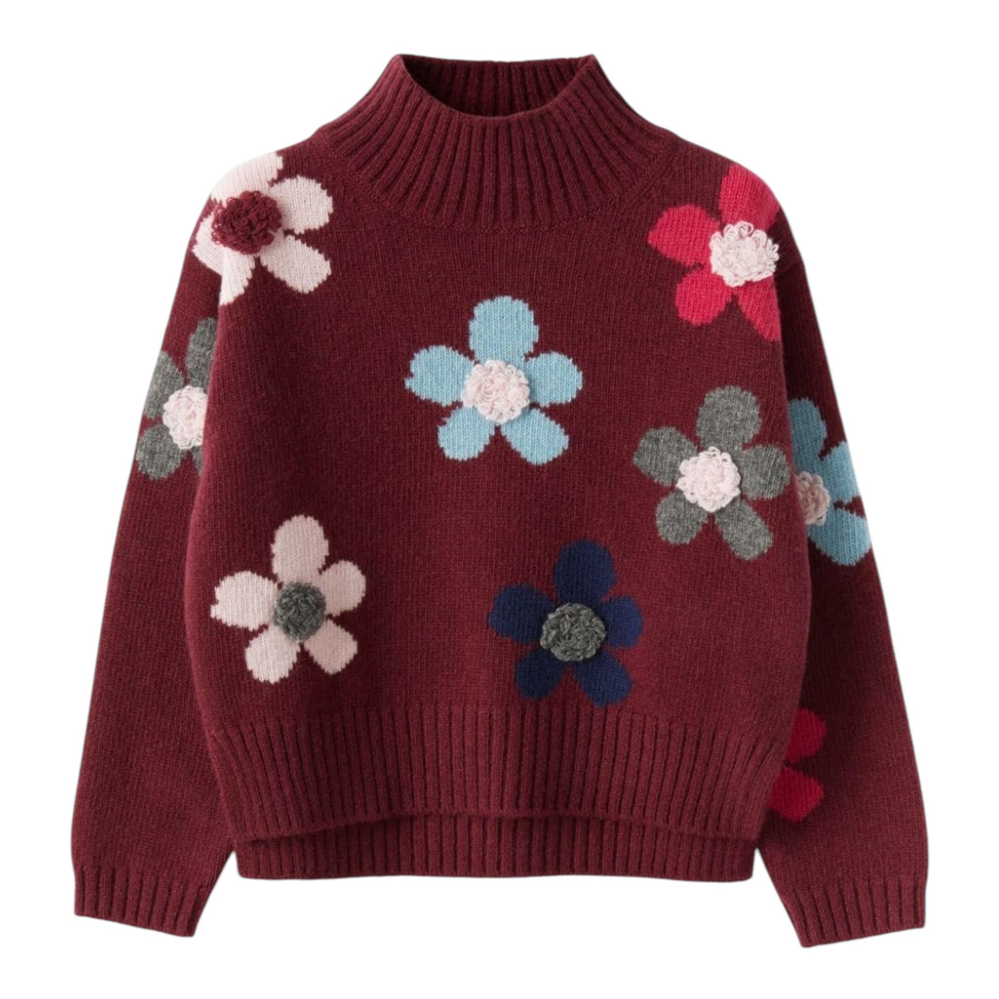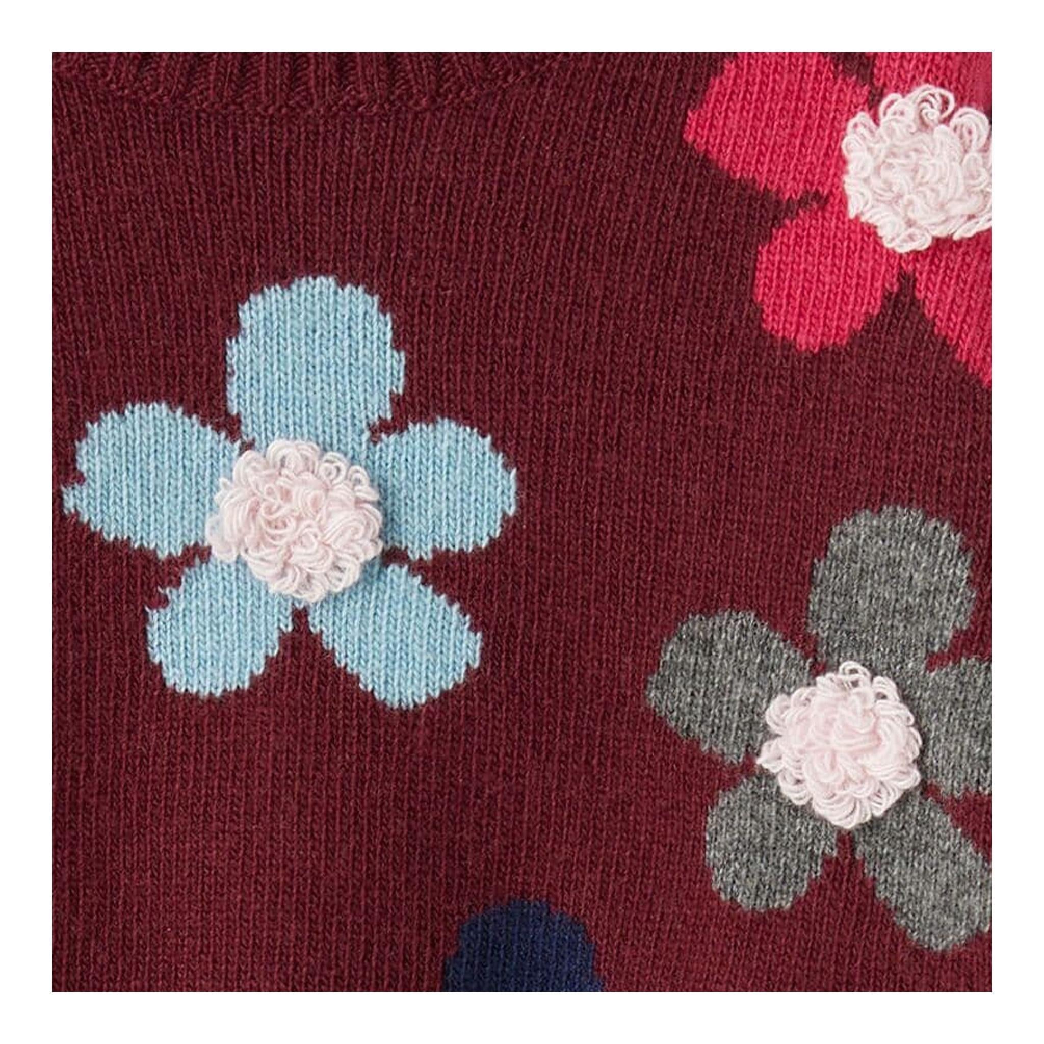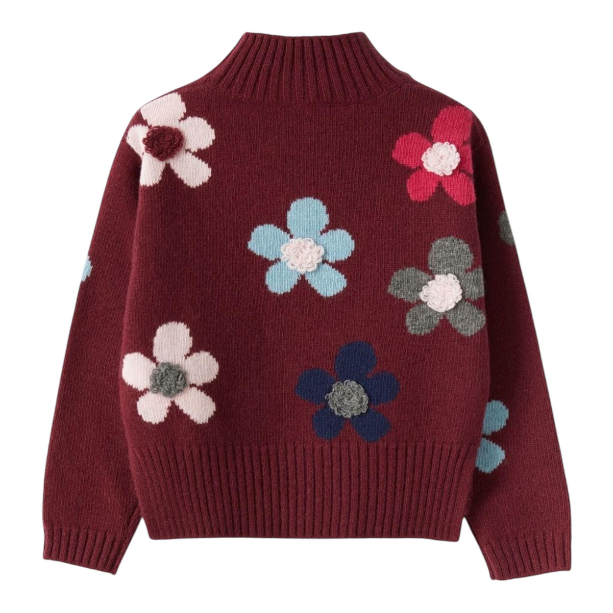 IL GUFO maglia tinta unita mezzo collo con stampa fiori Bordeaux per Bambina