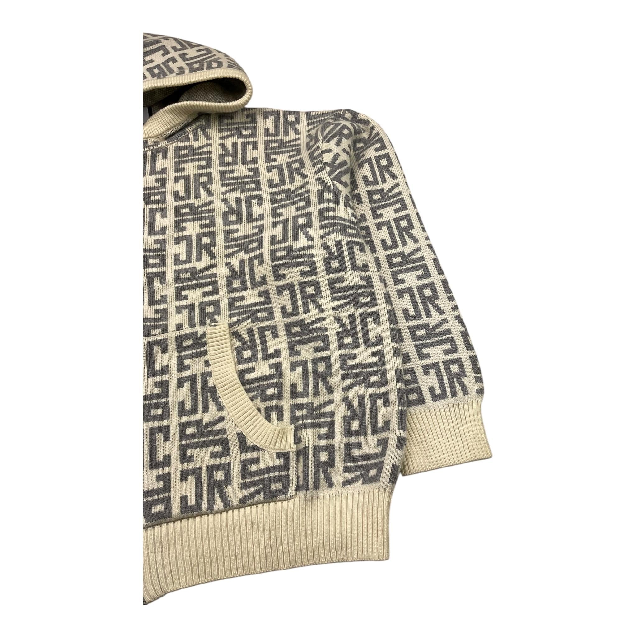 JOHN RICHMOND felpa in maglia con zip e cappuccio e stampe logo Panna per Bambino