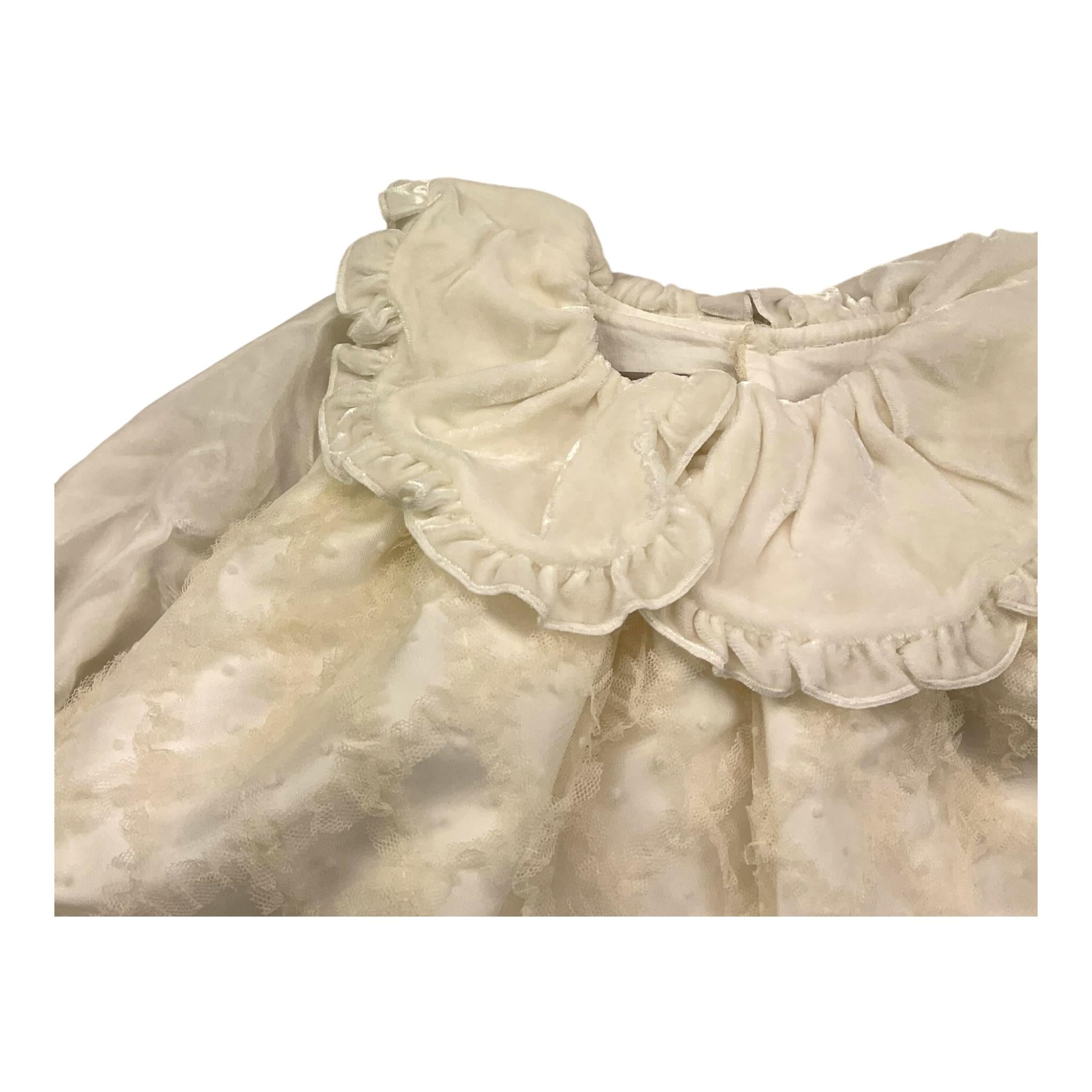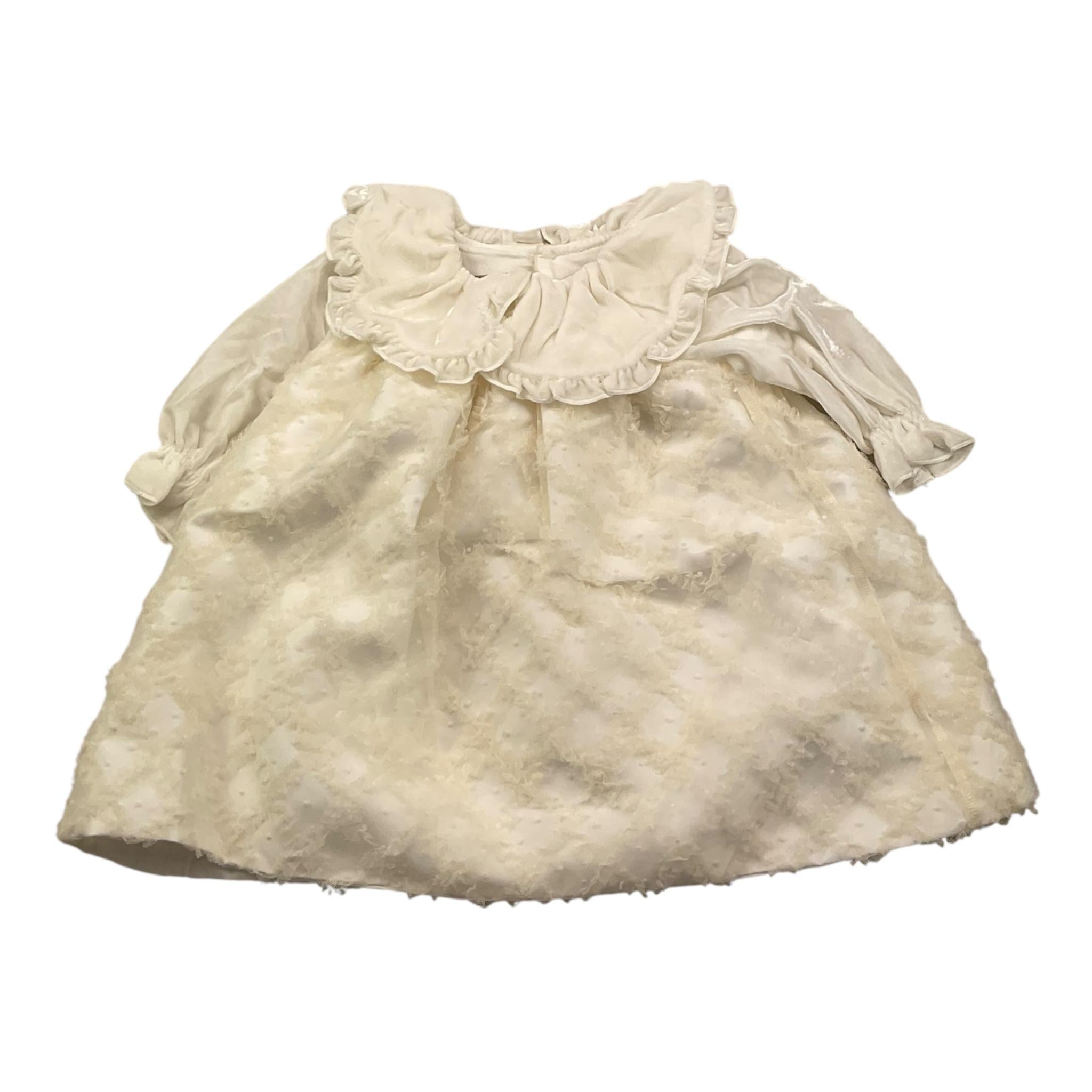 LA STUPENDERIA abito manica lunga tinta unita con maniche in ciniglia Panna per Neonata