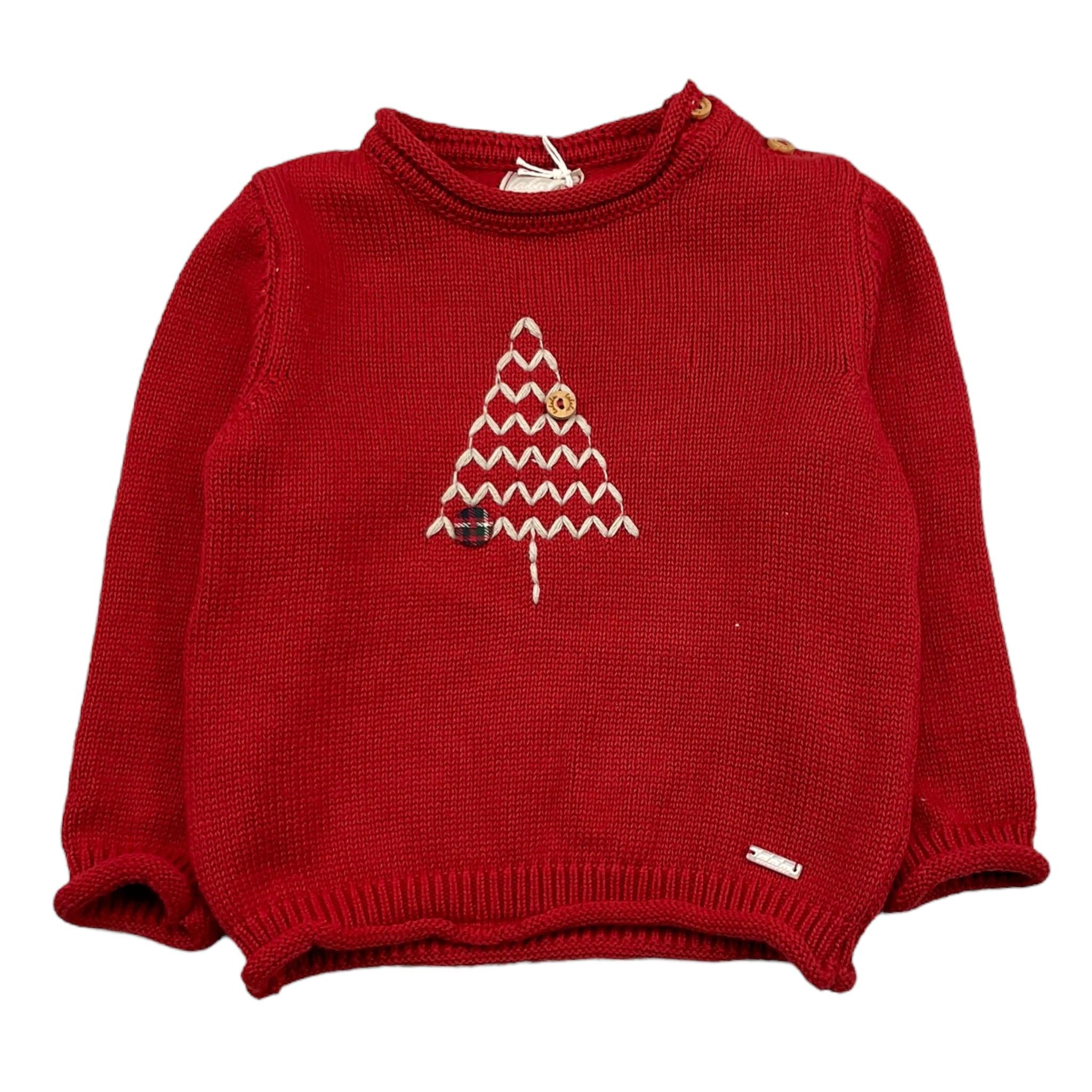 LALALU' maglia girocollo tinta unita con ricami Rosso per Neonato