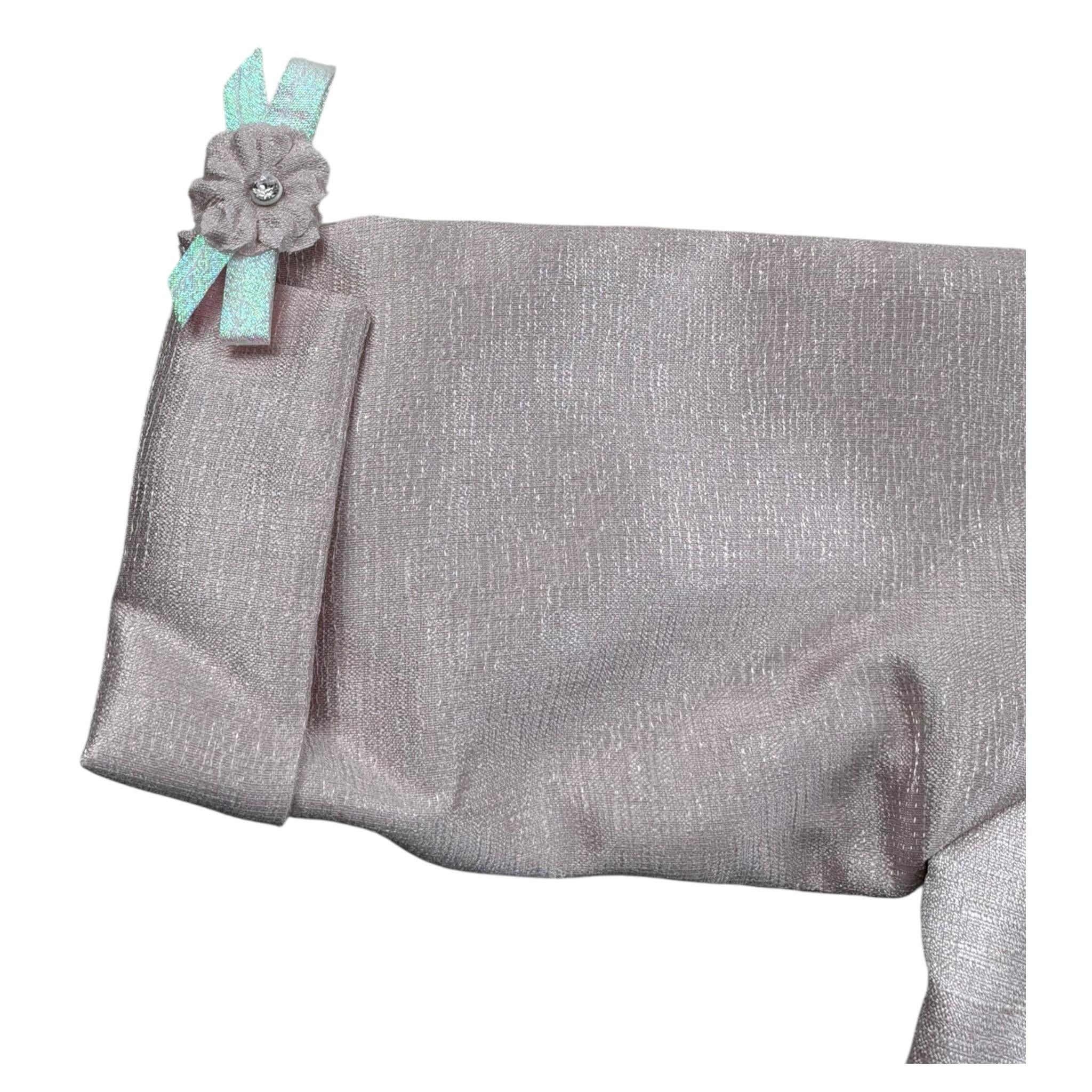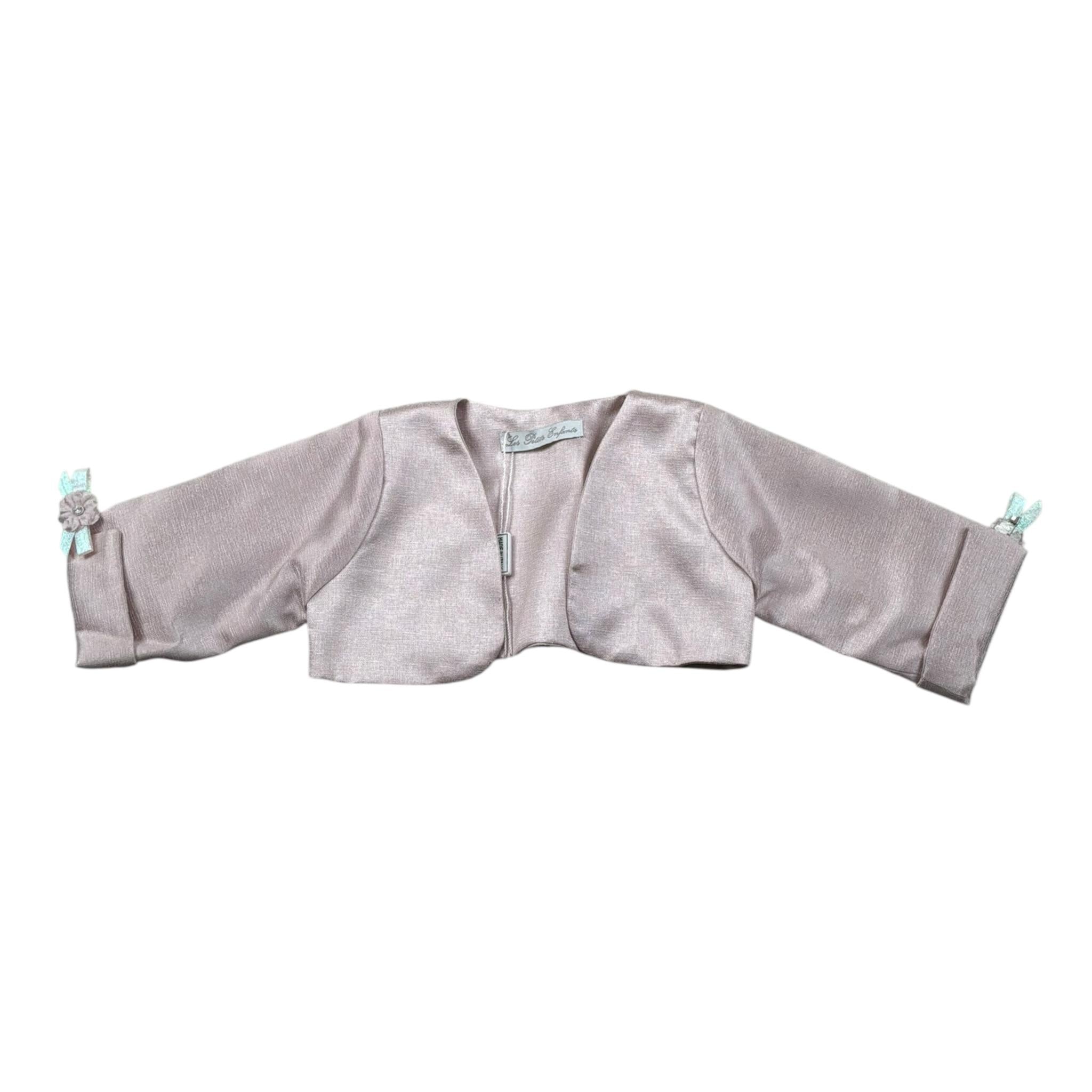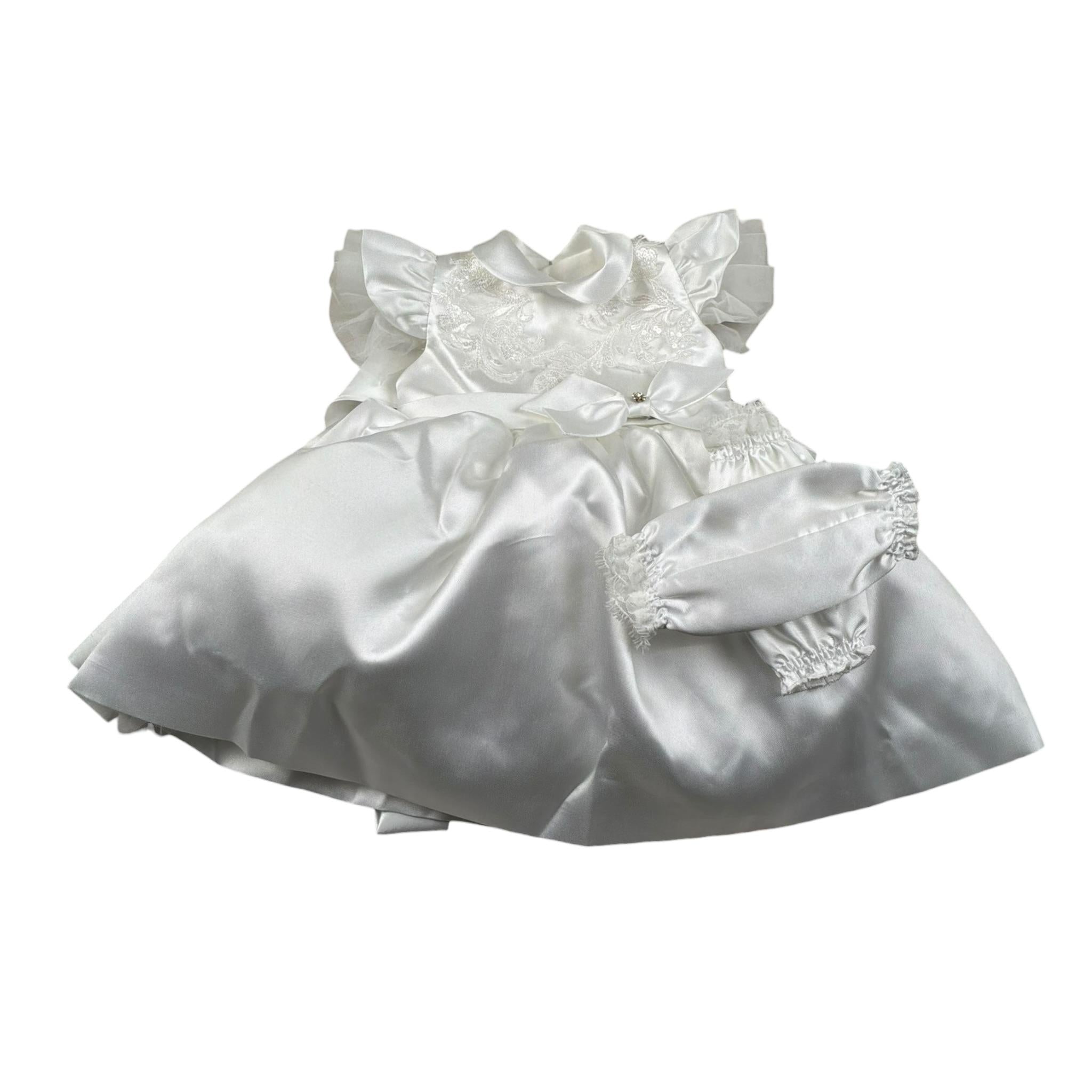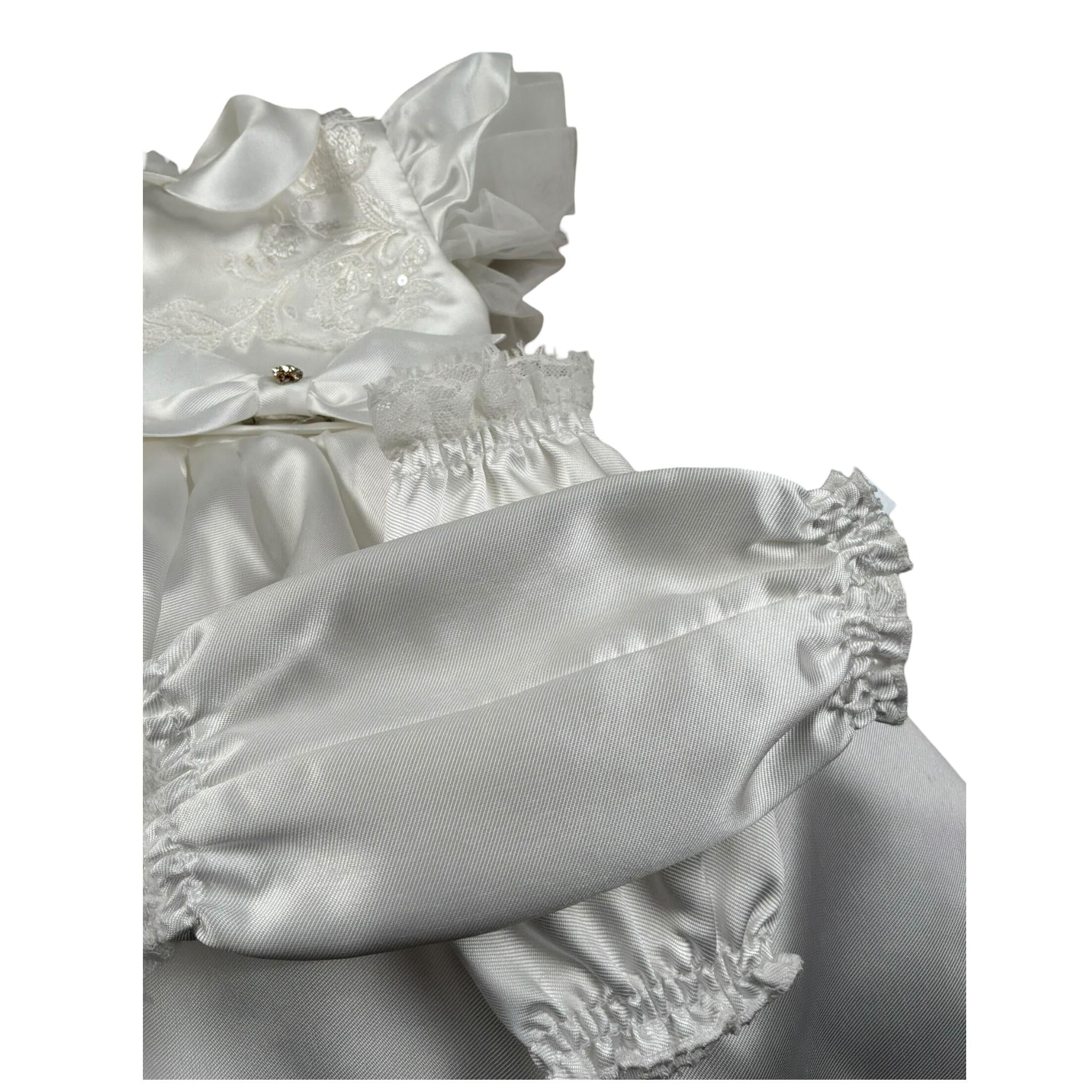 Les Petit Enfantes Abito Cerimonia Tinta Unita con Guanti con Coprispalle per Neonata