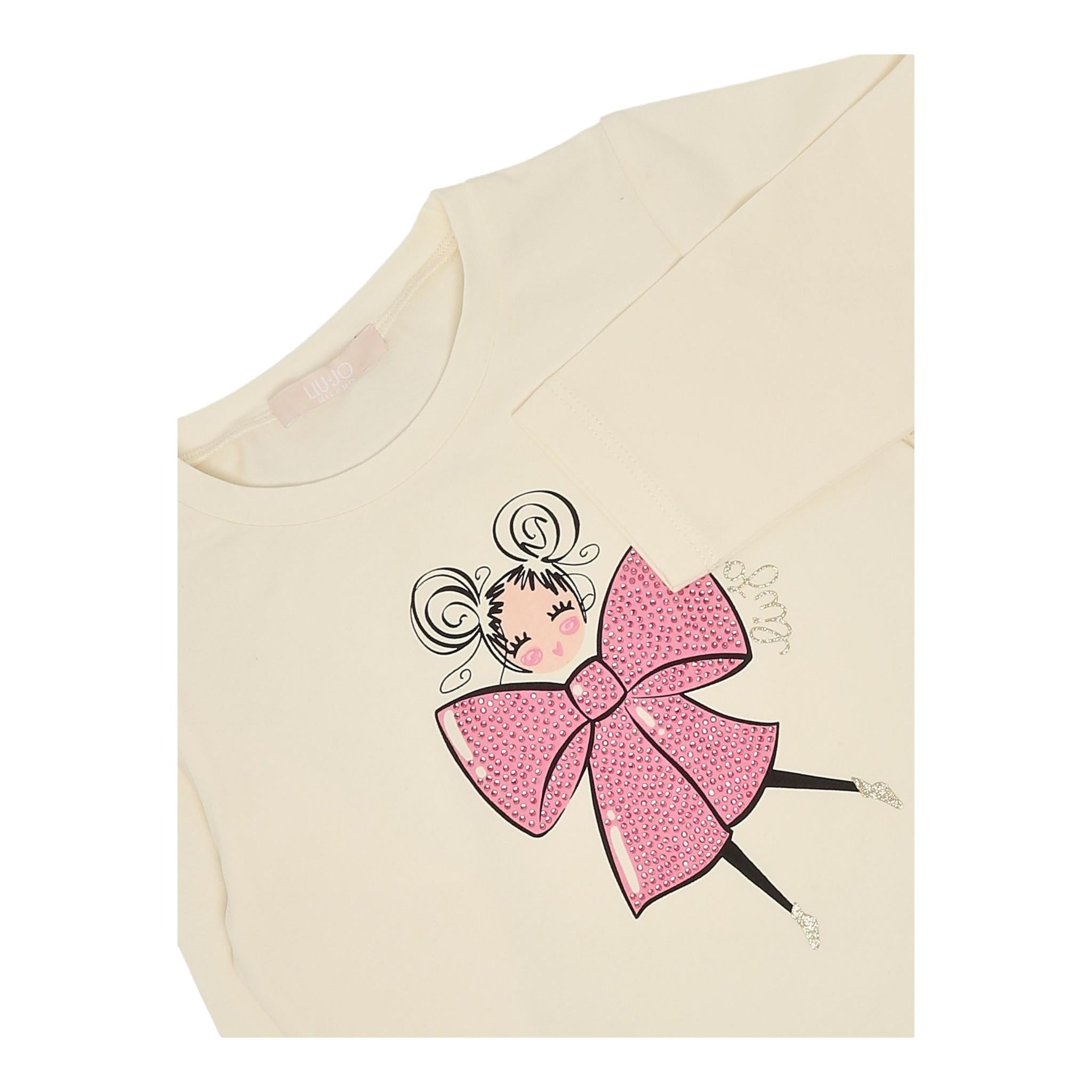 LIU JO shirt girocollo tinta unita con brillantini Panna per Neonata