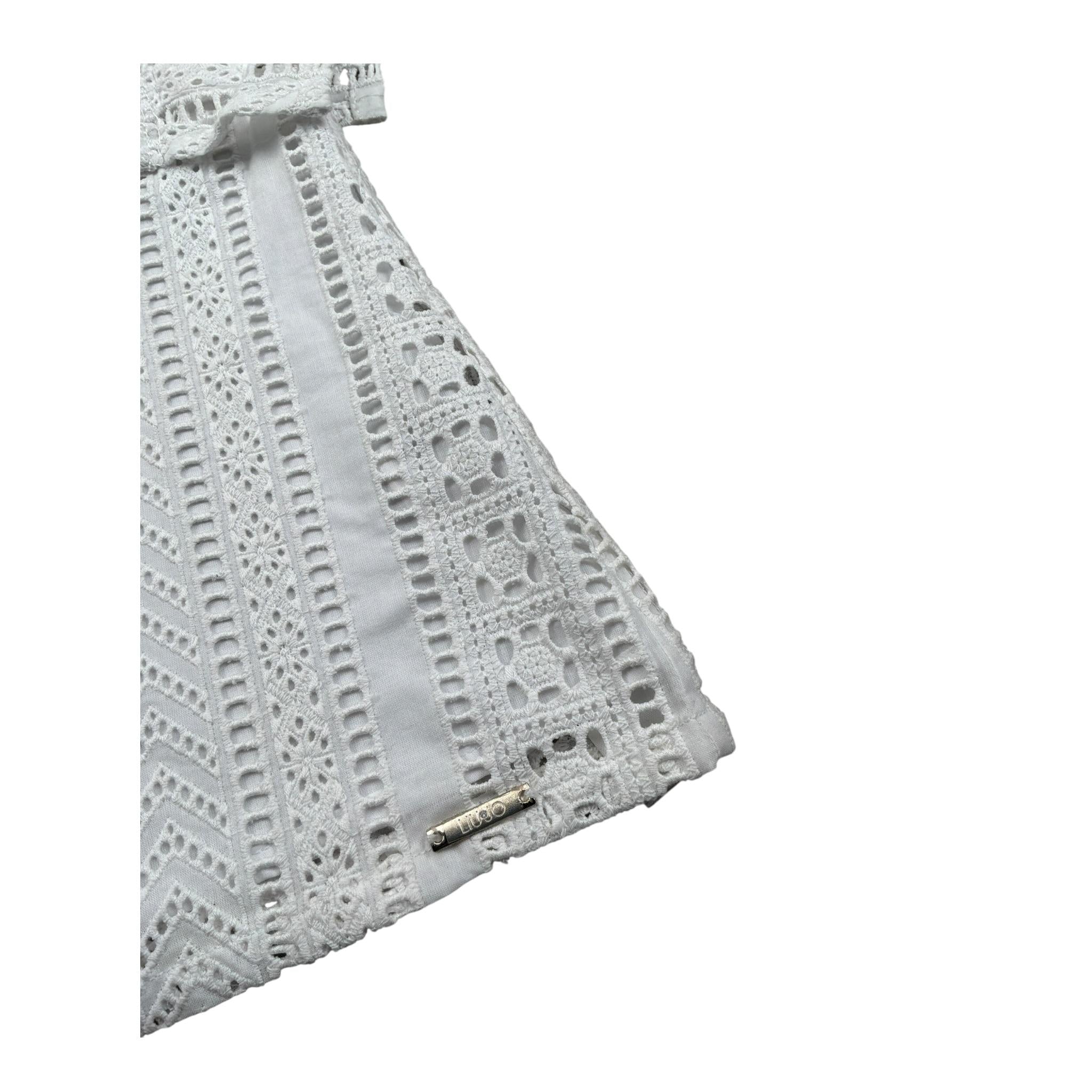 Liu Jo Top Giomanica tinta unita con Ricami Bianco per Neonata