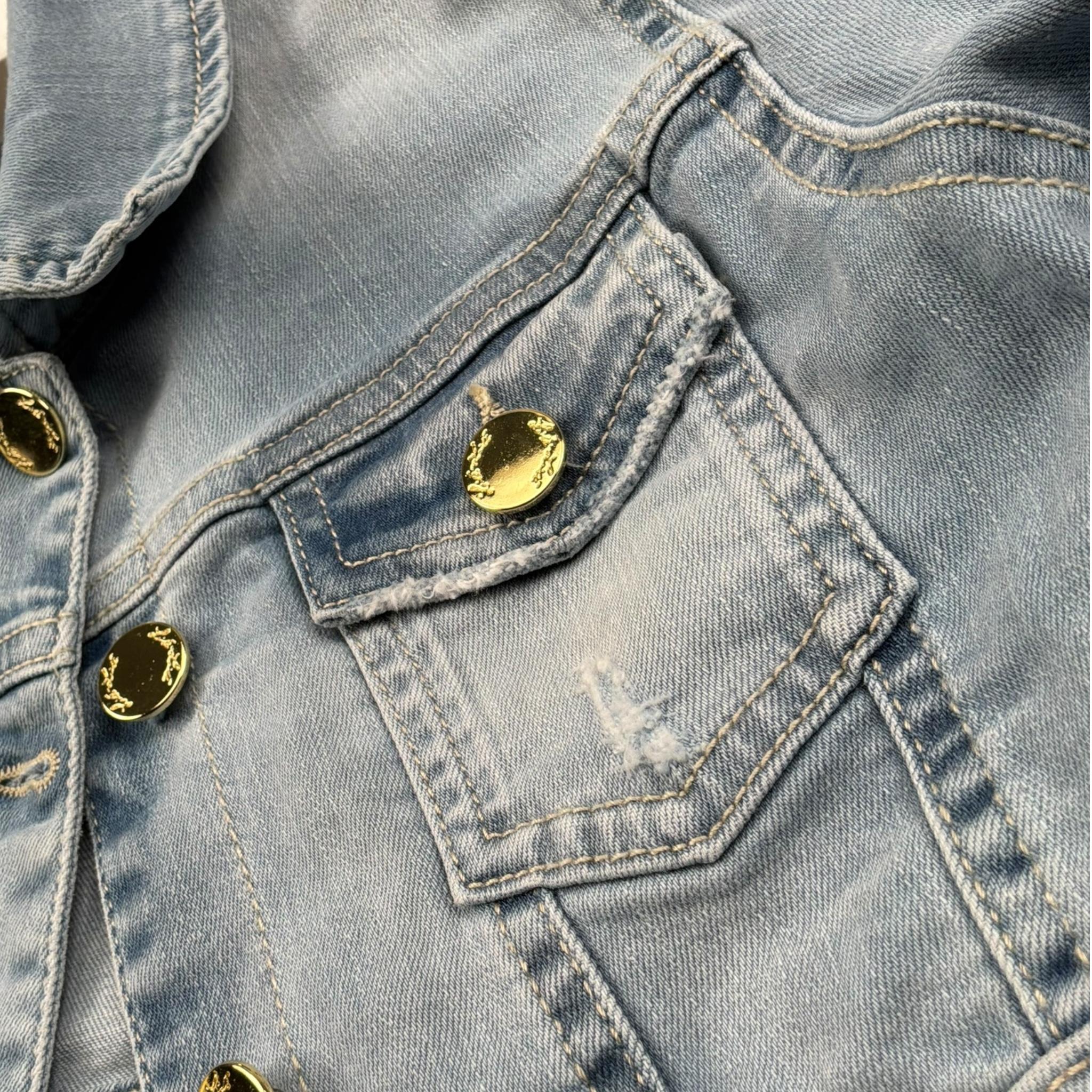 Lu Lu By Miss Grant Giubbino In Denim Tinta Unita con Bottoni per Bambina