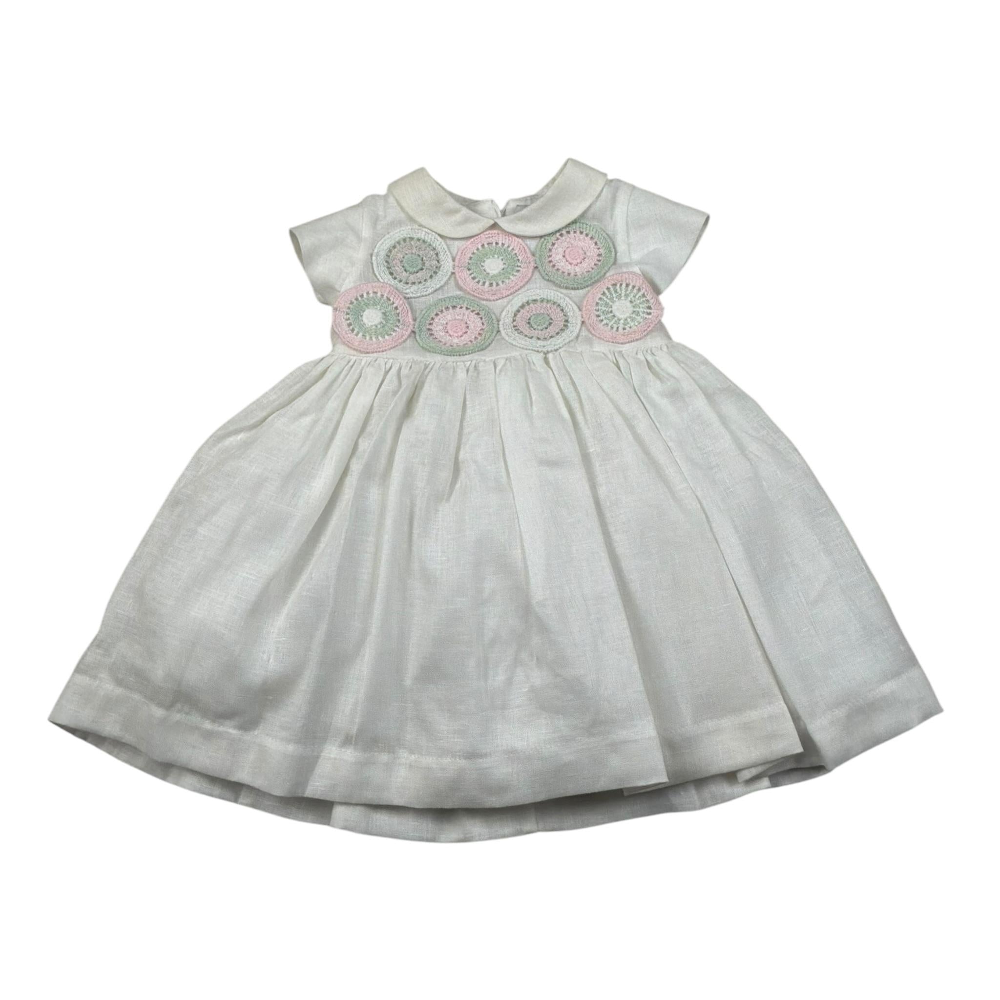 Marlu' Abito Mezza Manica Tinta Unita con Ricami per Neonata