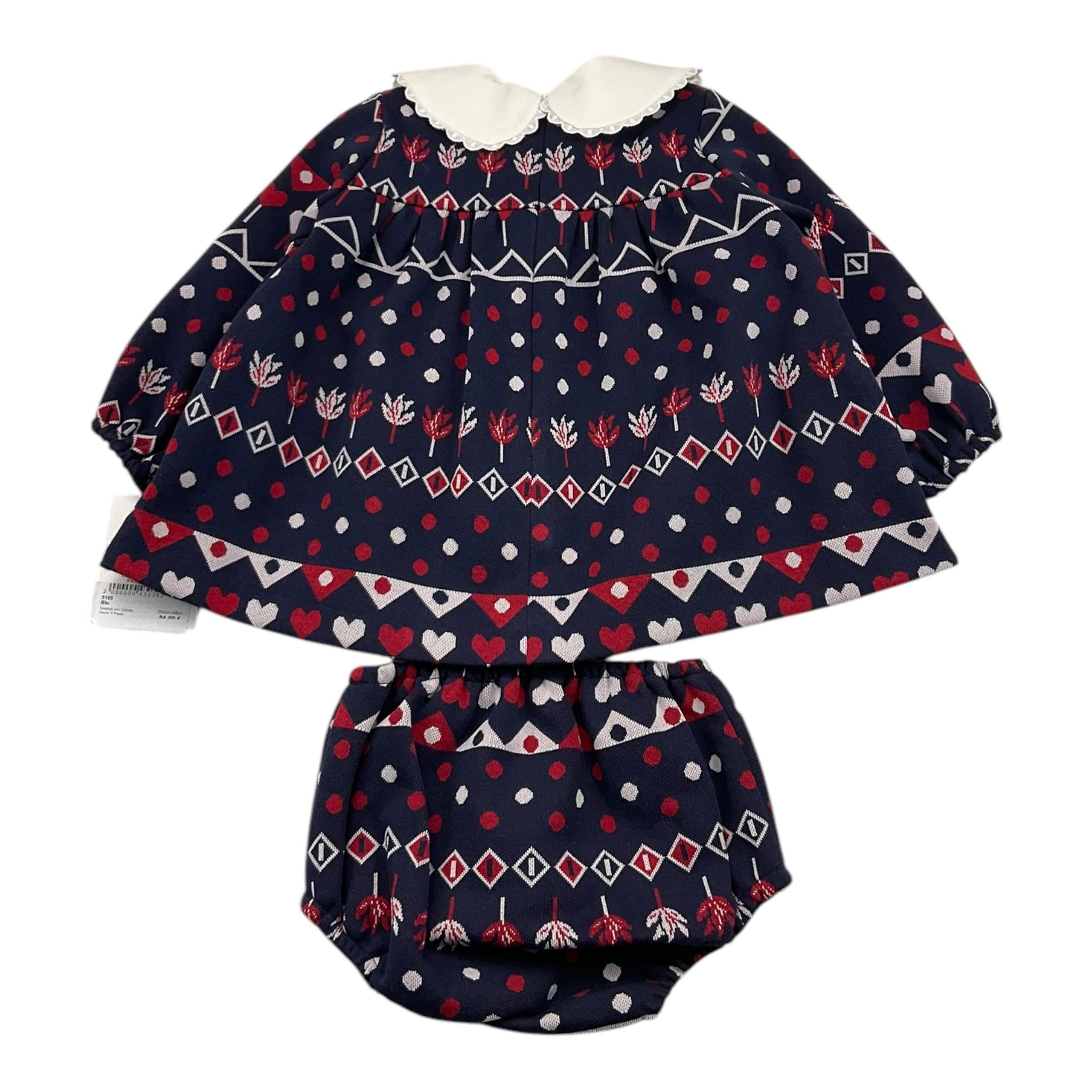 MARTA Y PAULA set abito-coulotte tinta unita con fantasia Blu per Neonata