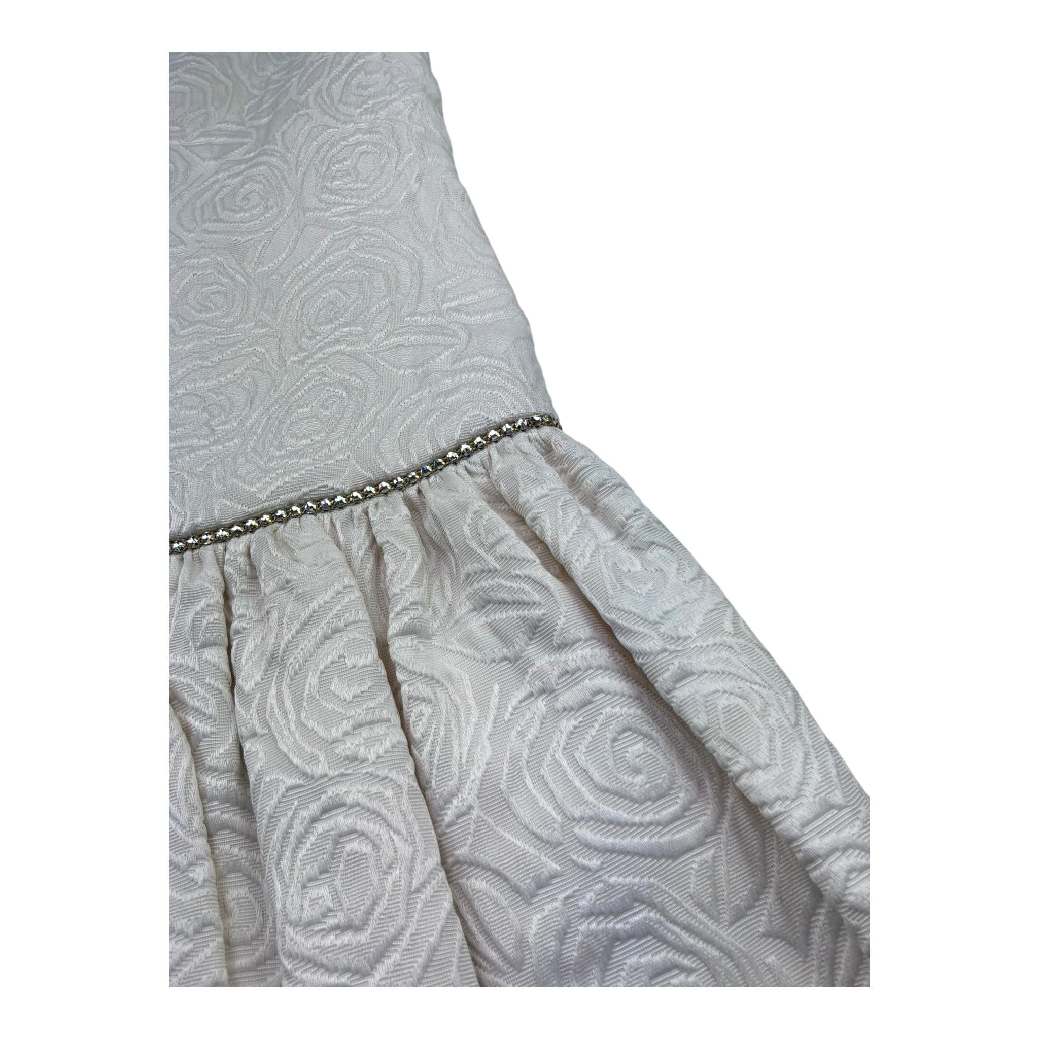 Monnalisa Abito Tinta Unita Giromanica con Ricami per Bambina 717914 AVORIO MONNALISA