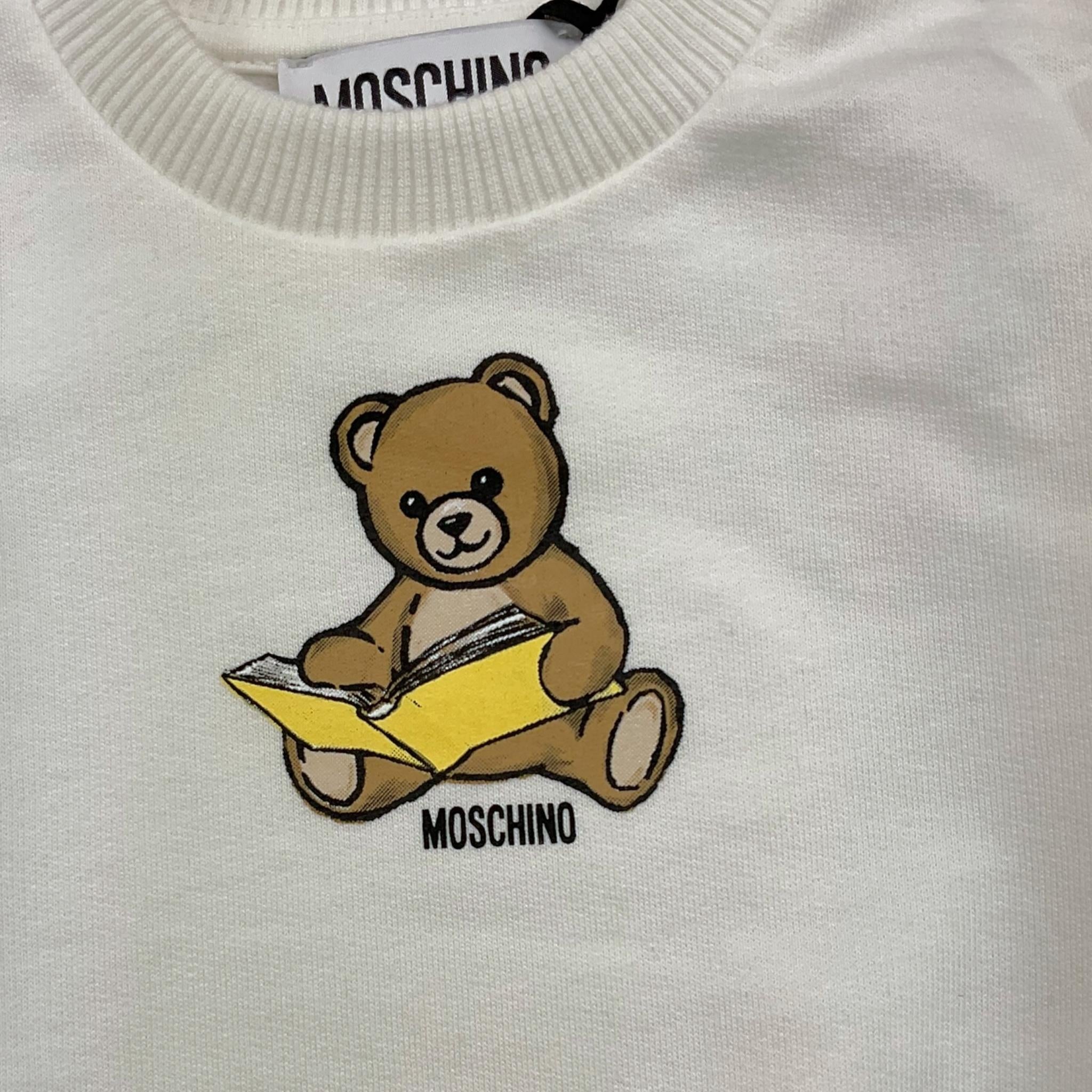 MOSCHINO felpa girocollo tinta unita con stampa Bianco per Neonato