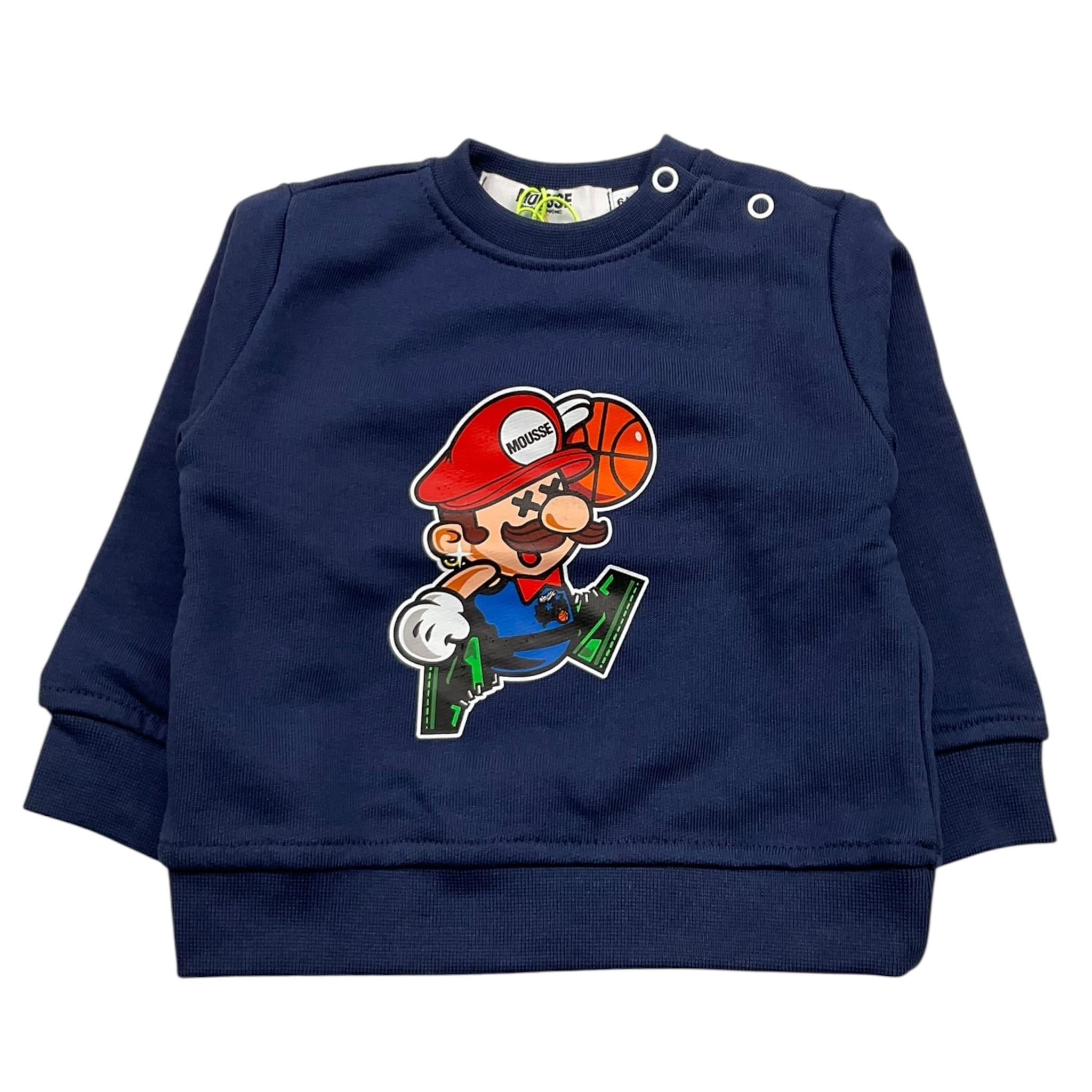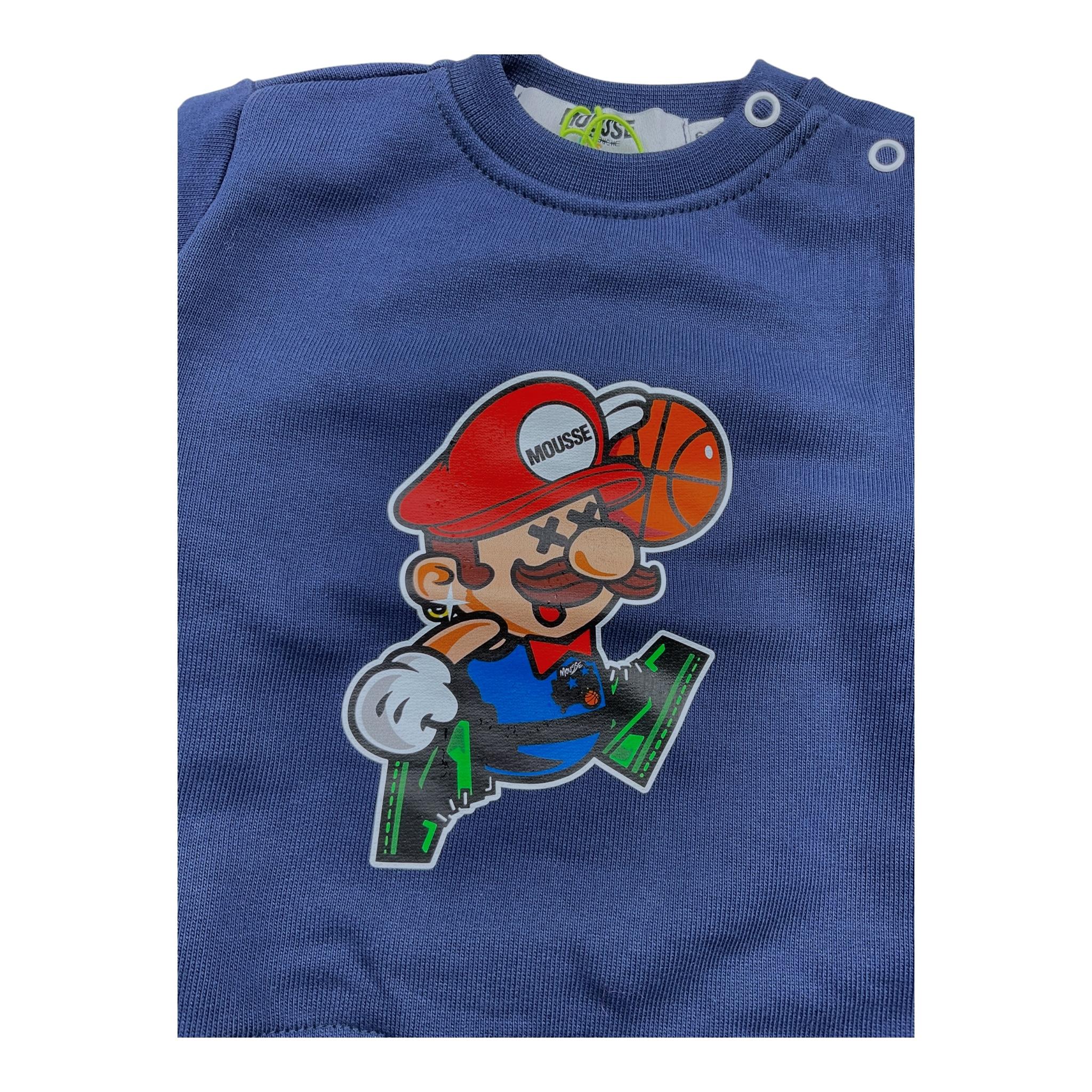 MOUSSE felpa chiusa girocollo tinta unita con stampa mario Blu per Neonato