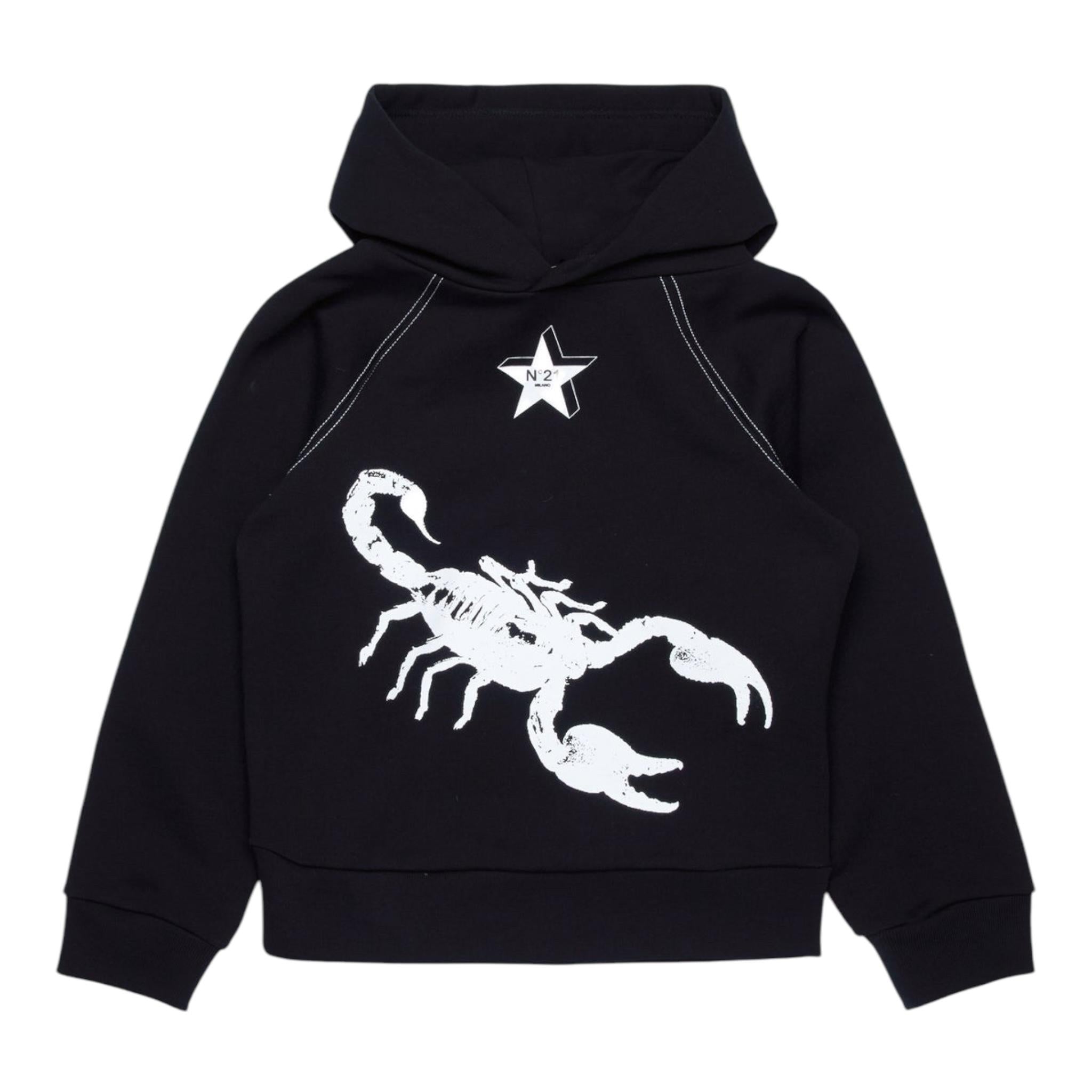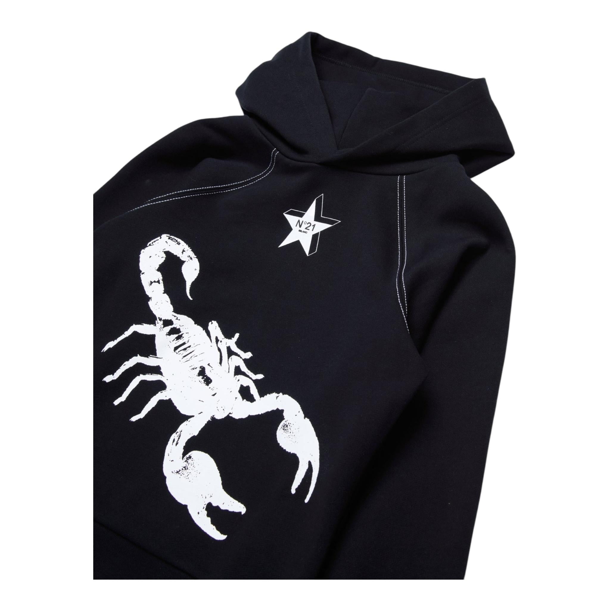 N°21 felpa tinta unita con stampa e cappuccio Nero per Bambino
