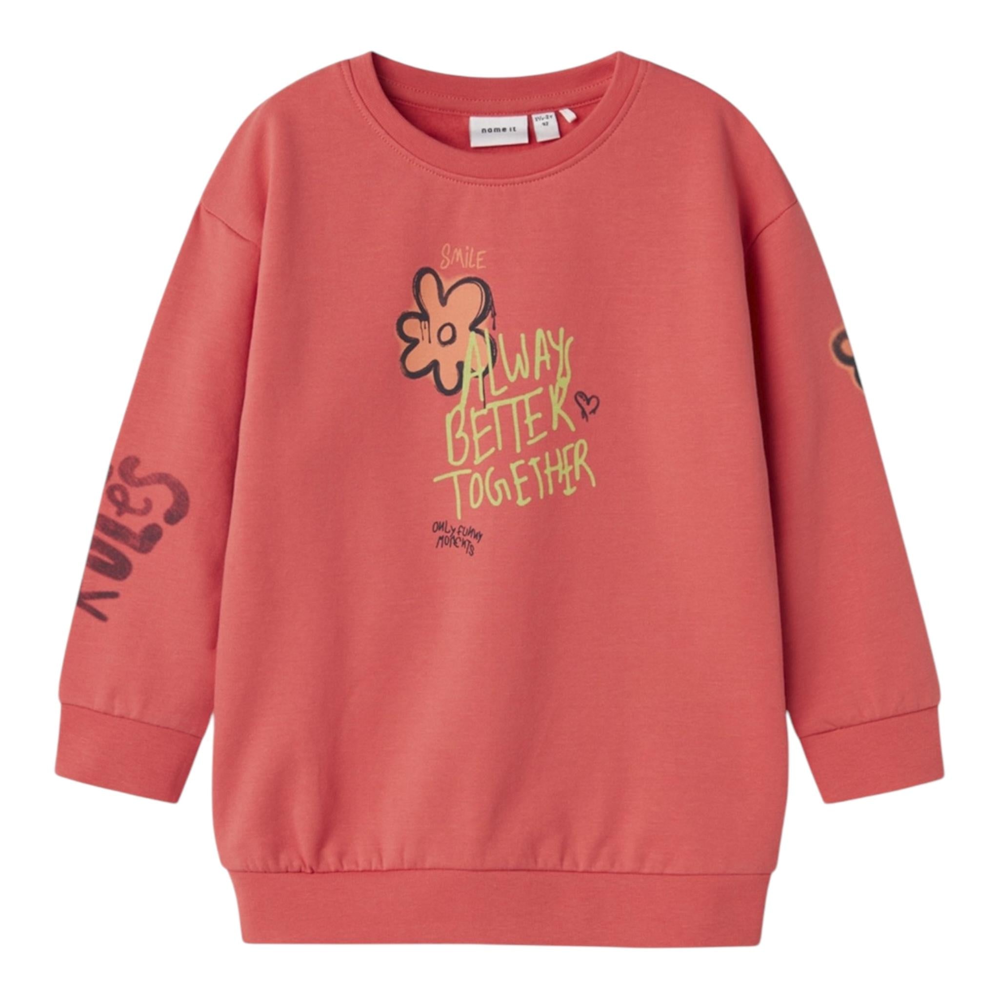 NAME IT abito tinta unita modello felpa con stampa Salmone per Neonata