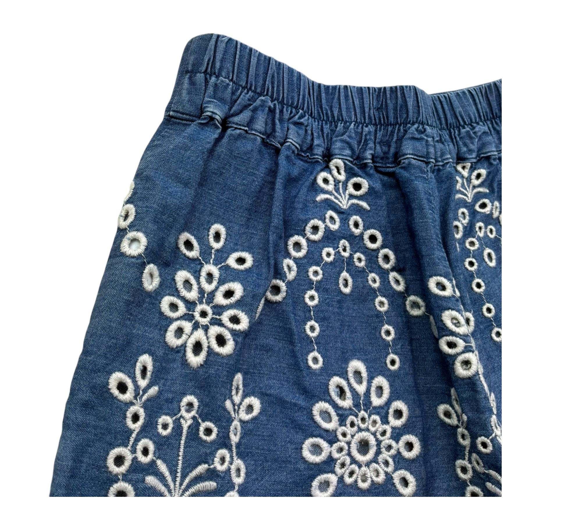 Saint Barth Gonna In Denim Tinta Unita con Pizzo Sangallo per Bambina