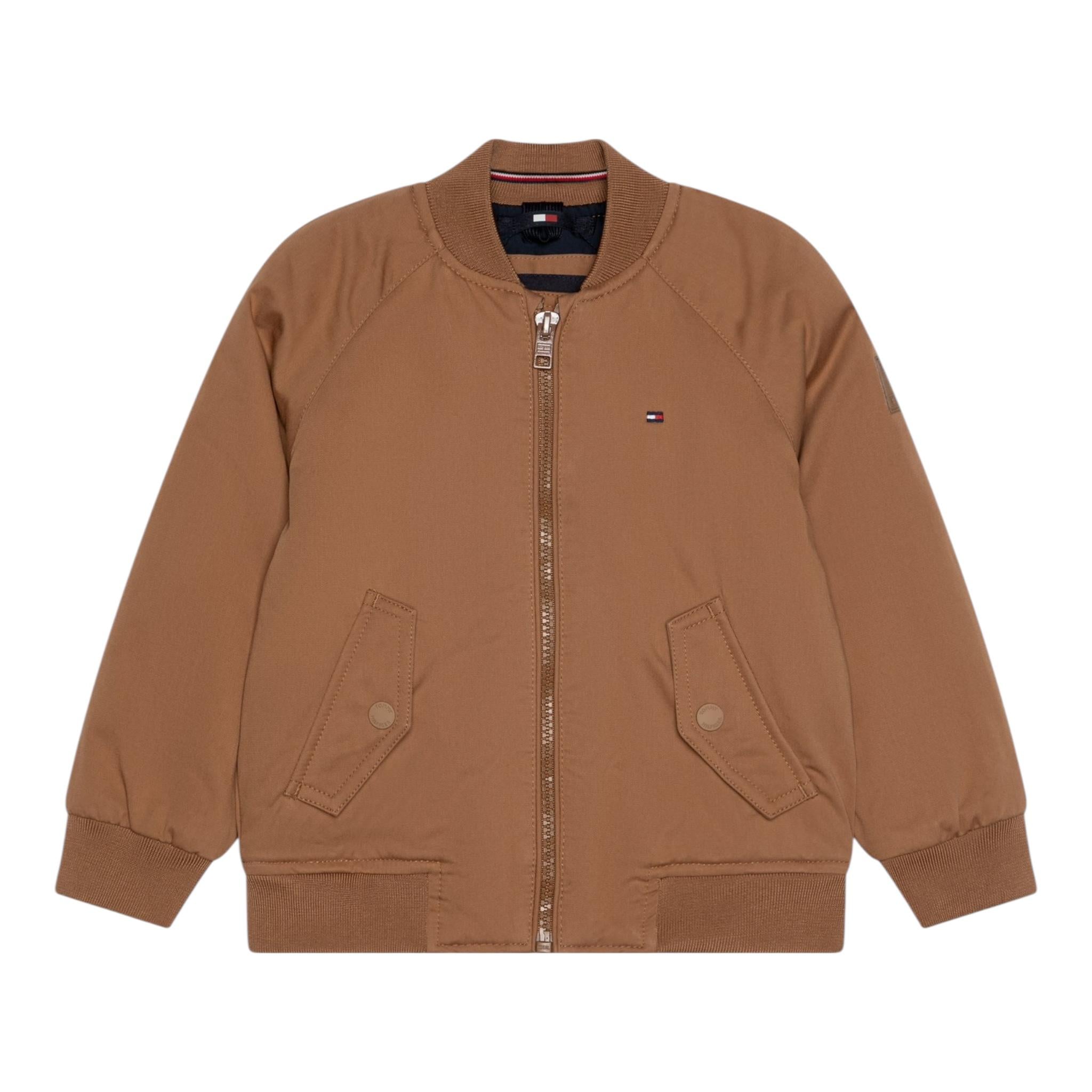 Tommy Hilfiger Giubbino Tinta Unita con Zip E Logo per Bambino KB0KB09363 MARRONE TOMMY HILFIGER